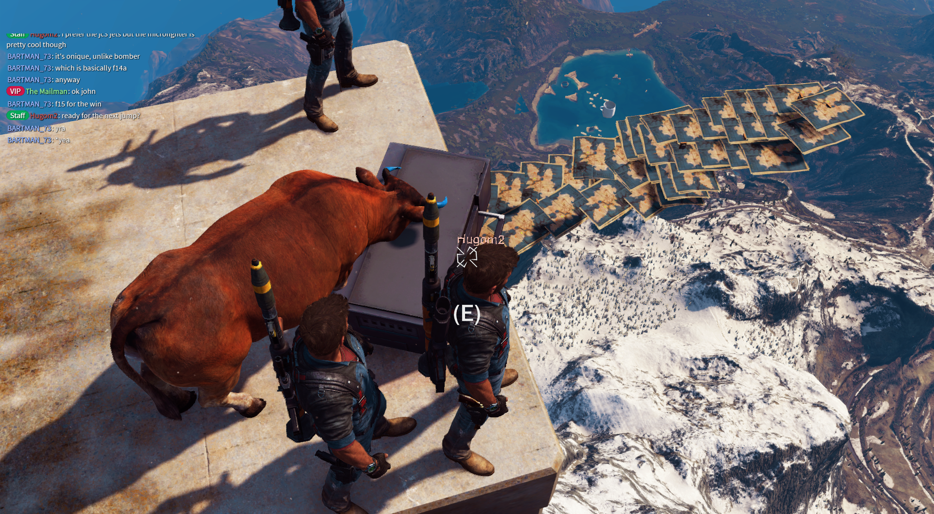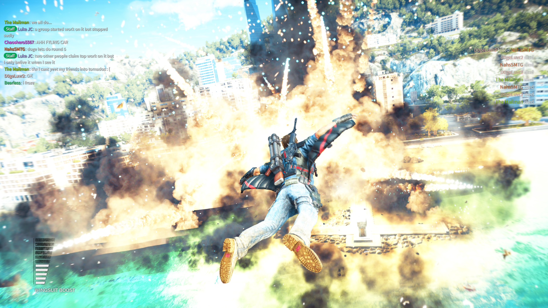 Not just that, it also enables several functionalities that were never enabled by the multiplayer mod’s creators, namely the bavarium wingsuit, sky fortress and grenades, with more on the way!